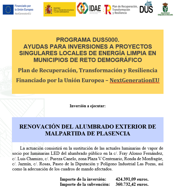 - Renovación del alumbrado exterior de Malpartida de Plasencia.