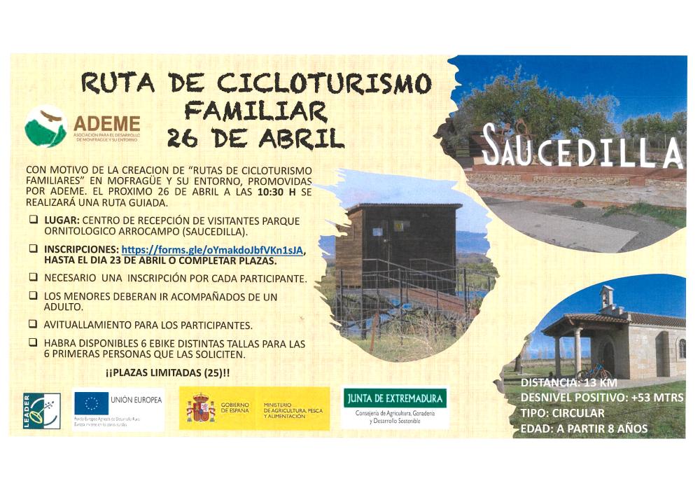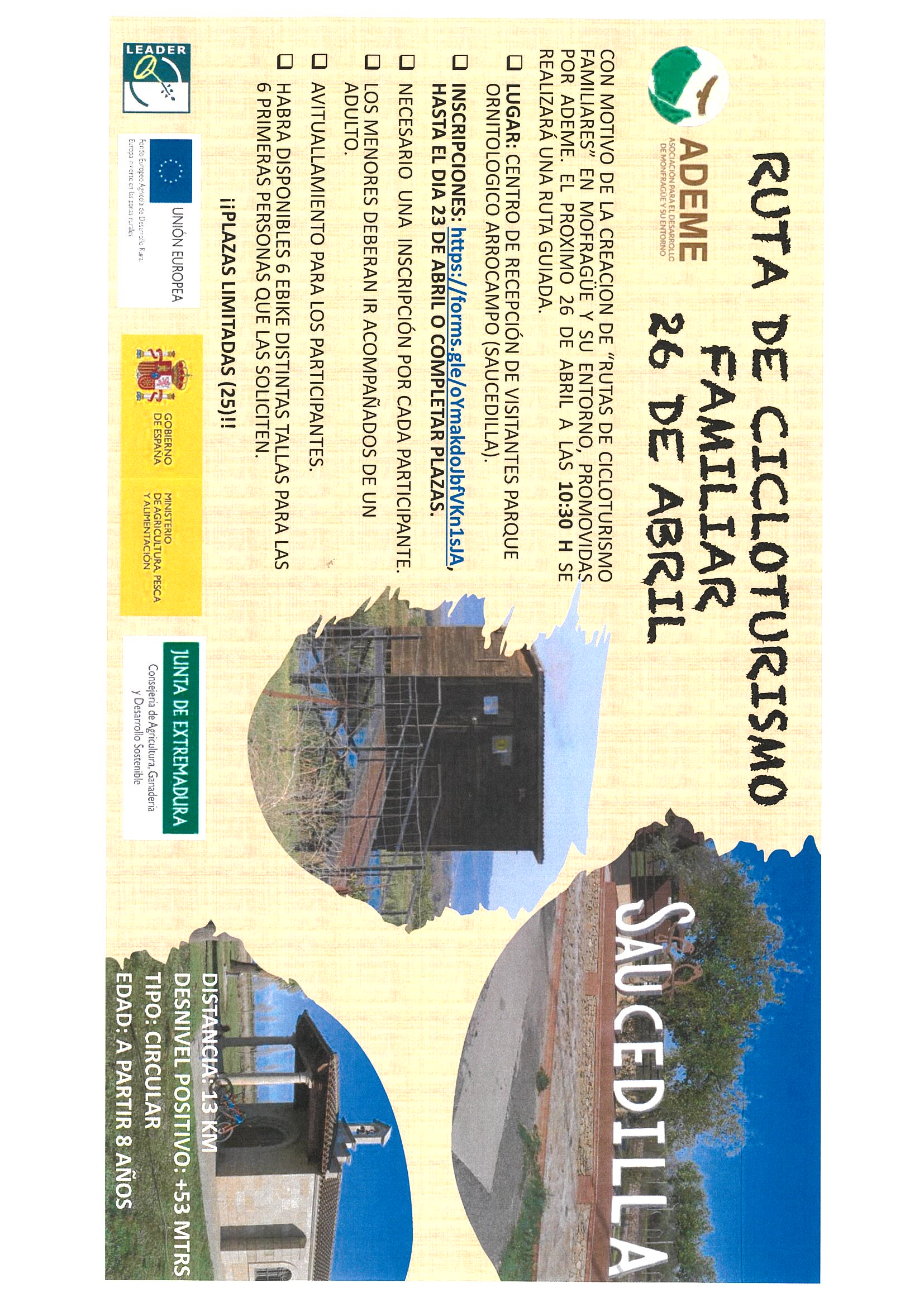 RUTA DE CLICLOTURISMO FAMILIARES EN MANFRAGÜE Y SU ENTORNO, PROMOVIDAS POR ADEME. EL PROXIMO 26 DE ABRIL A LAS 10:30H SE REALIZARA UNA RUTA GUIADA.