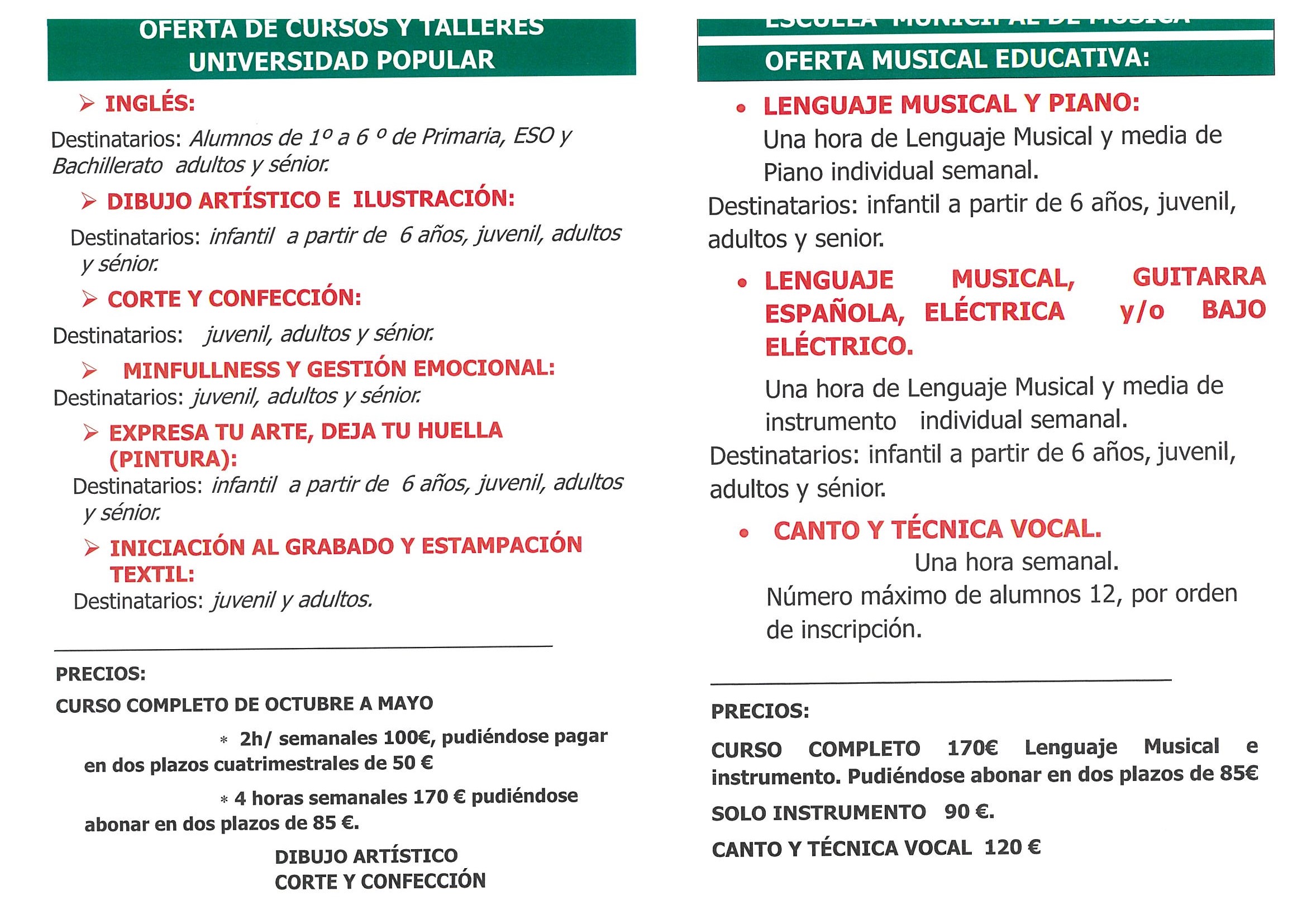 UNIVERSIDAD POPULAR CHINATA Y ESCUELA DE MUSICA OFERTA CURSOS Y TALLERES 2025/2026
