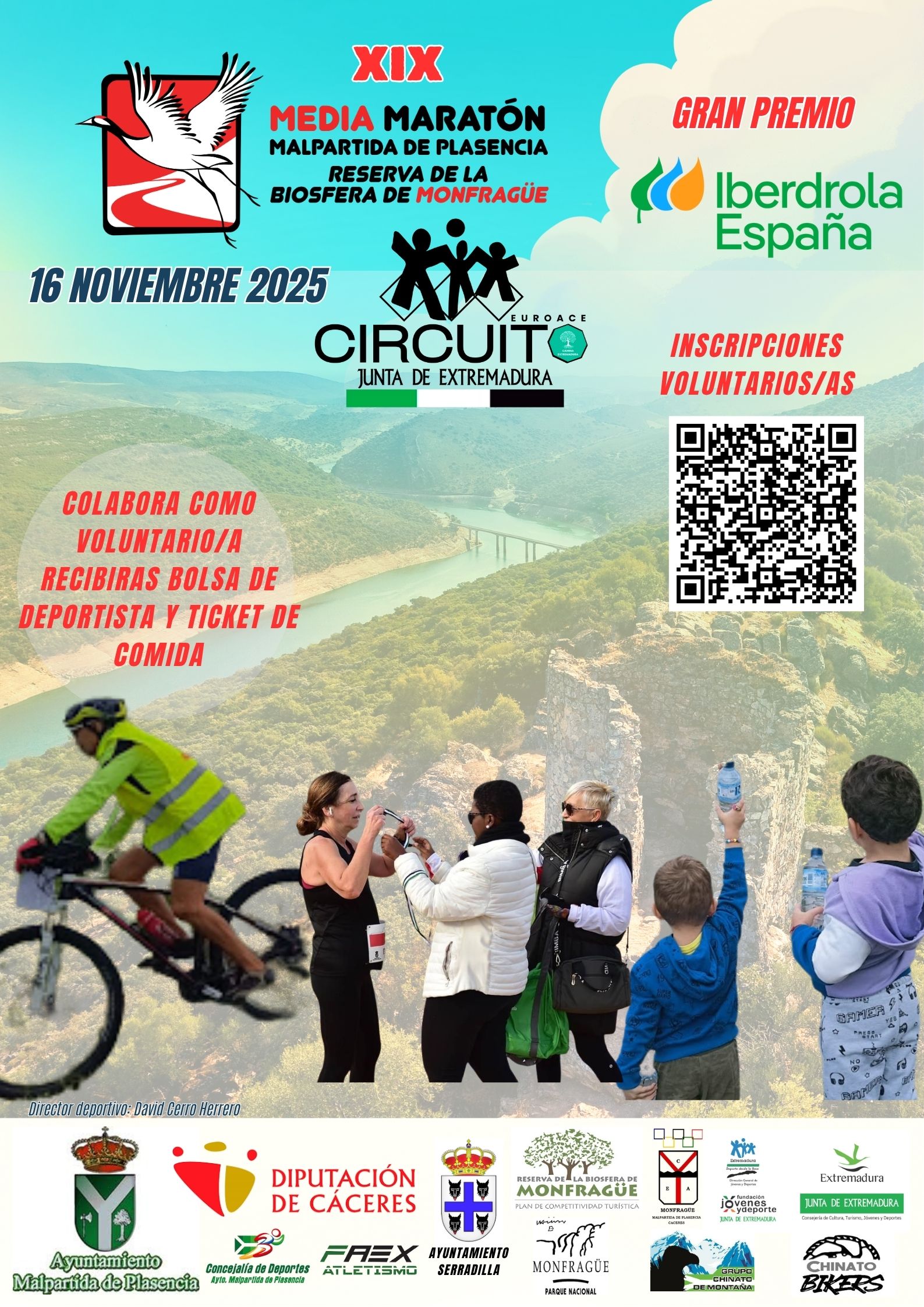 Un año más el Ayuntamiento organiza la Media Maratón Malpartida de Plasencia - Reserva de la Biosfera de Monfragüe Gran Premio Iberdrola, si quieres colaborar en la organización del evento apúntate para ser voluntario/a, una oportunidad para vivir la carrera de otra forma y disfrutar del esfuerzo de los deportistas.