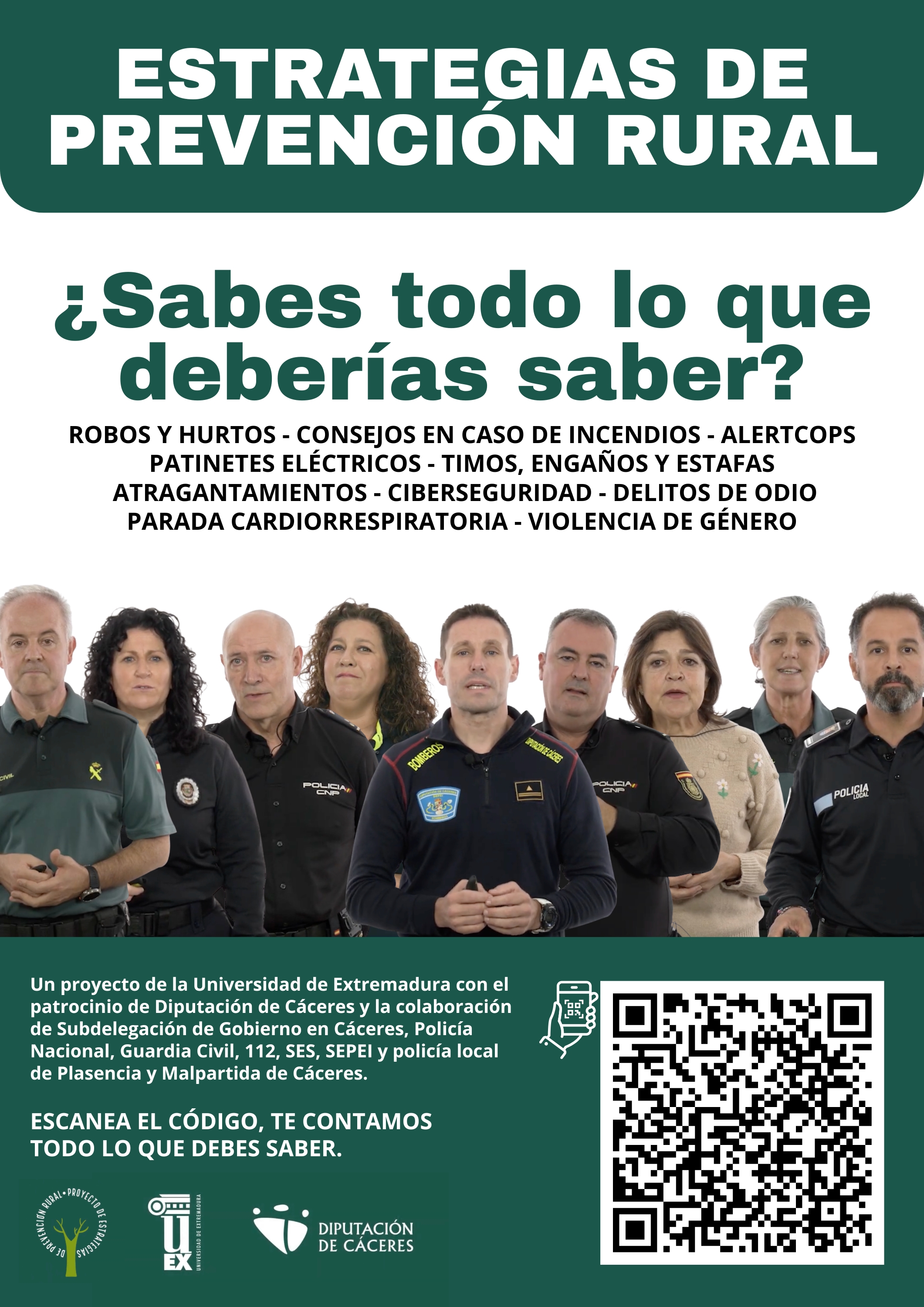 ESTRATEGIAS DE PREVENCIÓN RURAL 19 febrero 2026 Vídeos sobre temáticas de interés par todos los vecinos/as, relacionados con la seguridad