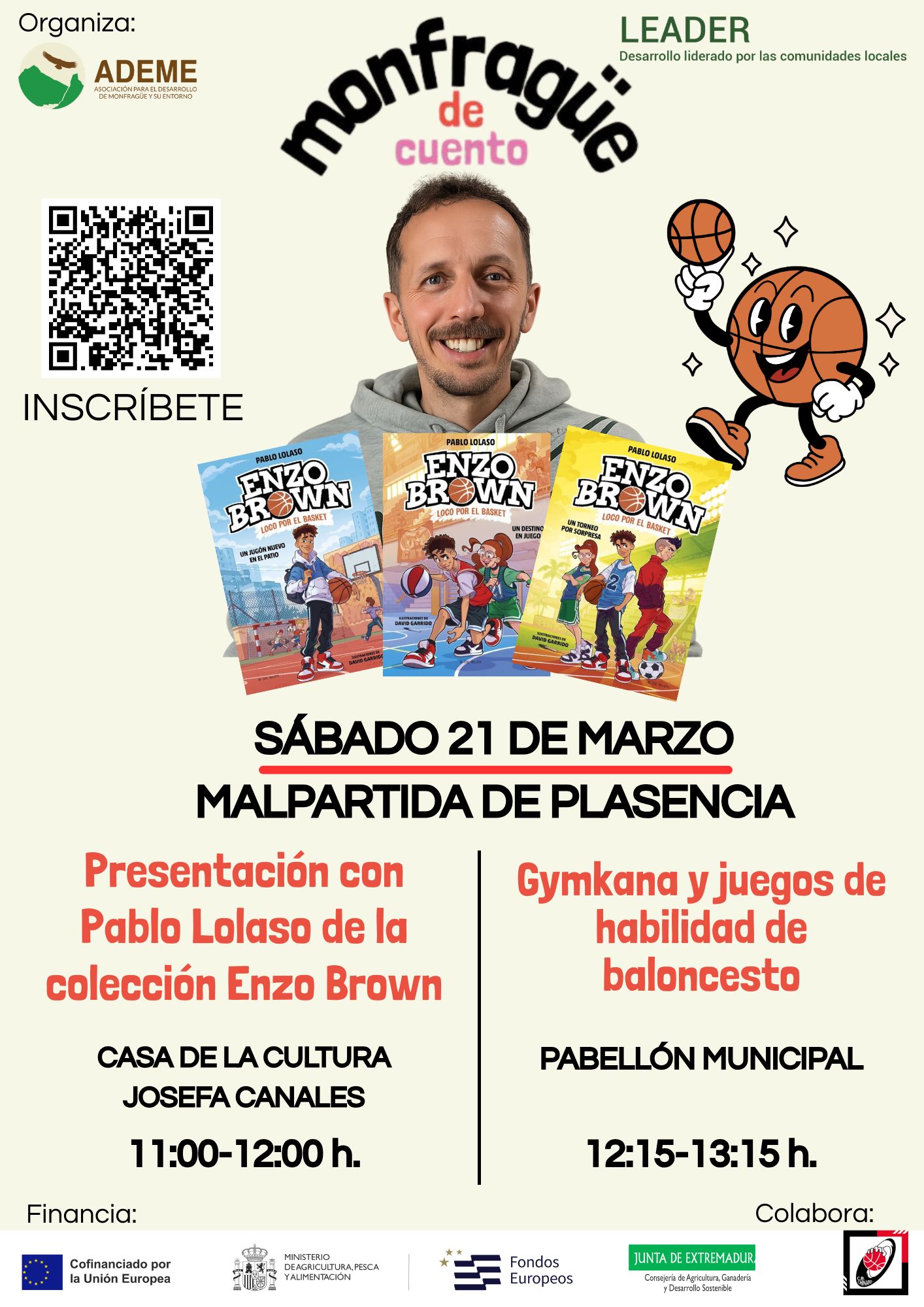 No te pierdas la presentación de "Enzo Brown" con Pablo Lolaso y una gymkana de juegos de habilidad de baloncesto.
